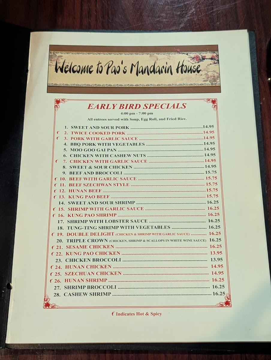 Pao's Mandarin House Menu
